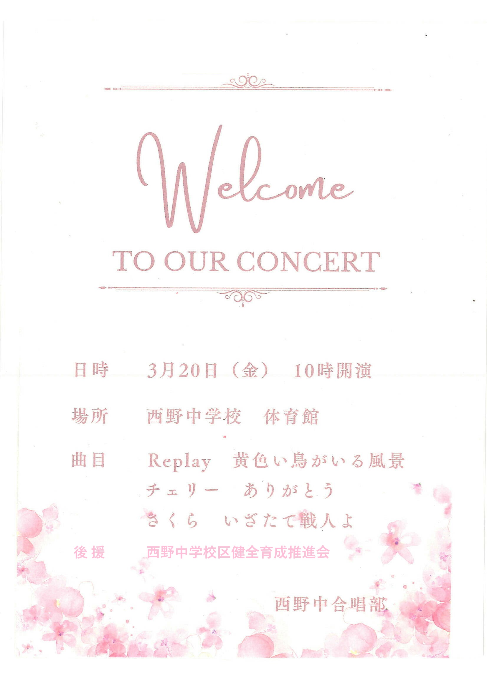 合唱部演奏会 [ jpg 280 KB ](09:16) from 西野中学校(西区)
