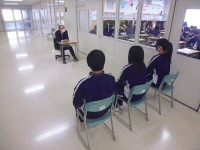 3年生は面接練習。1、2年生は総合的な学習の時間のまとめ。