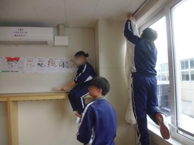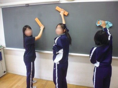 卒業した3年生の教室を清掃。