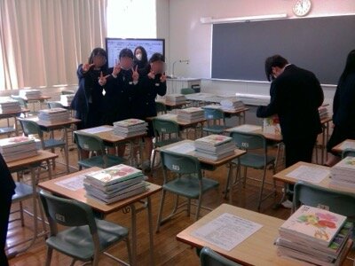 教科書配布。