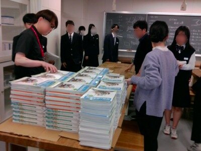 2、3年生のワーク受け渡し。