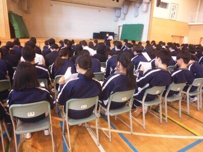 進路学活を集会形式で。