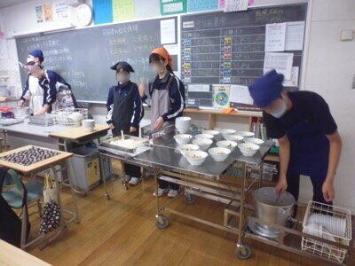 1年生の配膳が早いです。